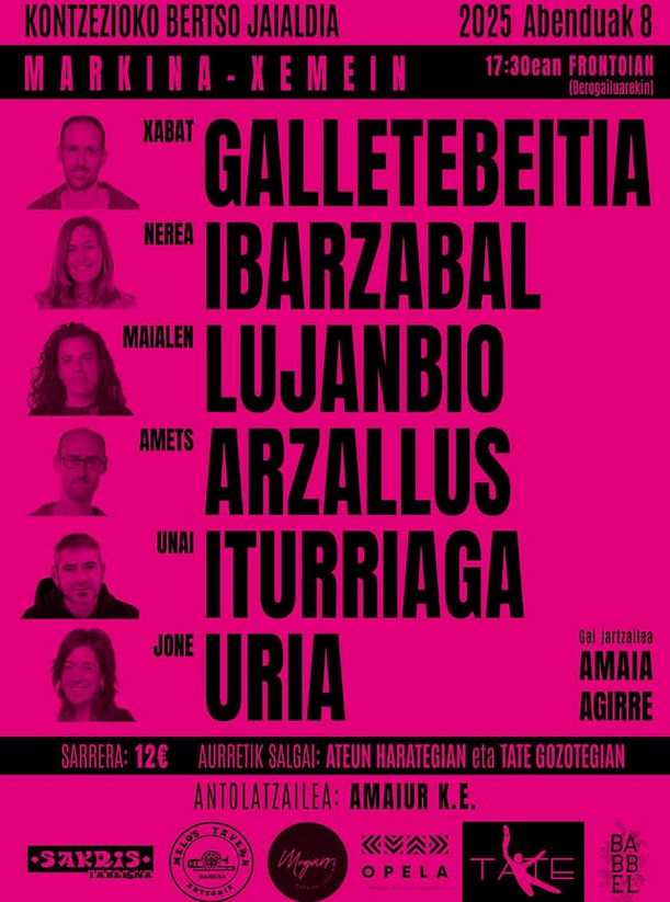 Bertsolariak: Xabat Galletebeitia, Nerea Ibarzabal, Maialen Lujanbio, Amets Arzallus, Unai Iturriaga eta Jone Uria.
