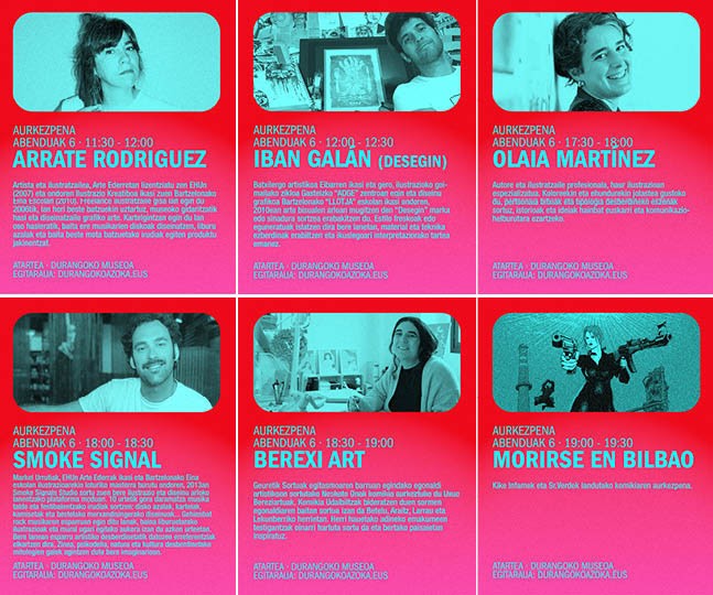 - 12:30 - 13:30: Aurkezpena. 60. Durangoko Azokearen iruditegia sortu dau Iratxe Reparazek. Sormen-prozesu eta jardunari buruz berba egingo dau Arrate Rodriguez lagun dauela.