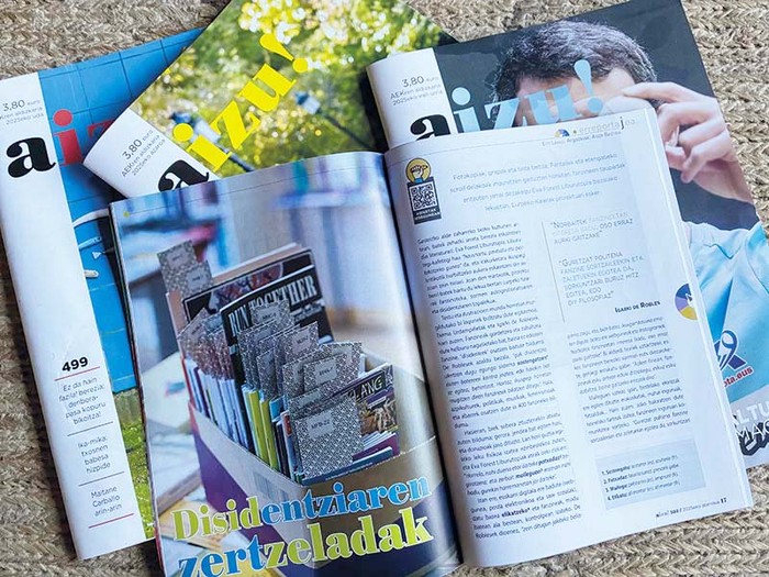 Aizu! aldizkariaren 0 zenbakia Durangoko Azokan aurkeztu zan, 1981ean. Ibilbide luze horretan 501 zenbaki argitarauta helduko da aurtengo edizinora, orduko helburua inoiz ahaztu barik: euskalduntze prozesuan bidelagun izatea euskera ikasten dabilenentzat.
