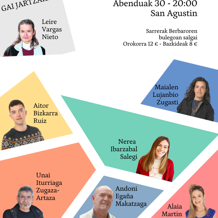 - Bertsolariak: Aitor Bizkarra, Andoni Egaña, Nerea Ibarzabal, Unai Iturriaga, Maialen Lujanbio eta Alaia Martin.