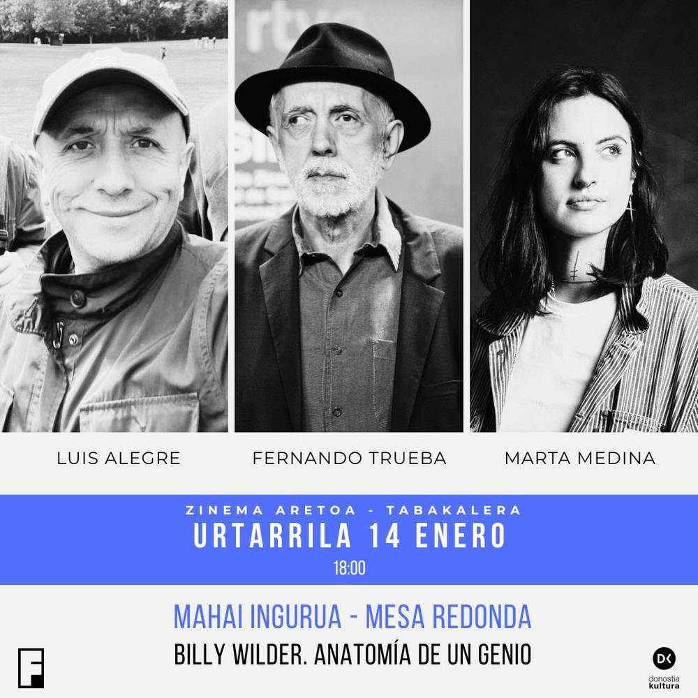 Billy Wilder. Anatomía de un genio mahai-inguruak Billy Wilderen figureari eta lanari buruz hausnartzeko eta haren analisia egiteko topaketea proponiduten dau. Alkarrizketa horretan parte hartuko dabe Fernando Truebak, Luis Alegrek eta Marta Medinak. Joxean Fernández, barriz, Euskadiko Filmategiko zuzendaria ibiliko da moderatzaile lanetan.