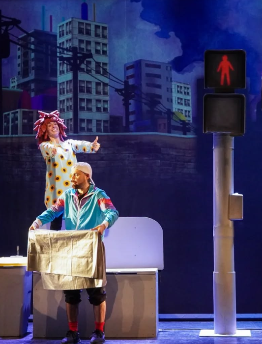 Antzezlan multimedia, antzerkia, bideo-animazinoa, interakzinoa eta musikea batzen dituana.