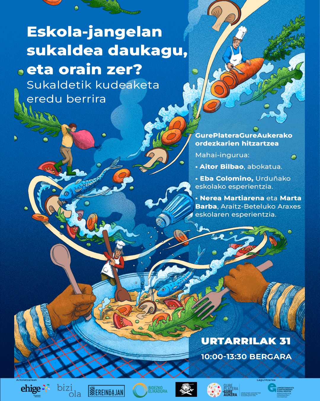 Jardunaldia hezkuntza-komunidadeetako eta tokiko erakundeetako kideei zuzendua dago. Horren bidez, lehen hurreraketea egin gura deutse eskola-jantokien kudeaketa deszentralizaduari.