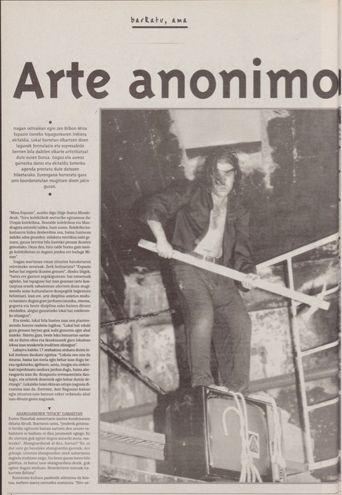 Mina Espazio, 1997 eta 2000 urteen artean Bilbon euskal artista eszeniko garaikideek autokudeatutako kontrakultura-lokala zan. 22 eta 26 urte bitarteko gazteak asanblearismoa eta autogestinoaren bitartez espazio artistiko hura kudeatu eben. Bertan, hainbat diziplinetako Euskal Herriko sortzaile ugari batu ziran. Helburua ondokoa zan: sentiduten ebena esan eta egin, beti be, artearen eskutik. Halanda ze, euskal antzerkiaren istorio hori berreskuratzen da espazio alternatiboen garrantzia sustatzeko, memoria kolektiboa bizteko eta kolektibotasunaren inguruan hausnartzeko.