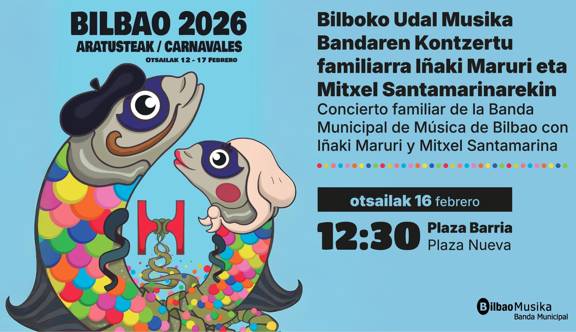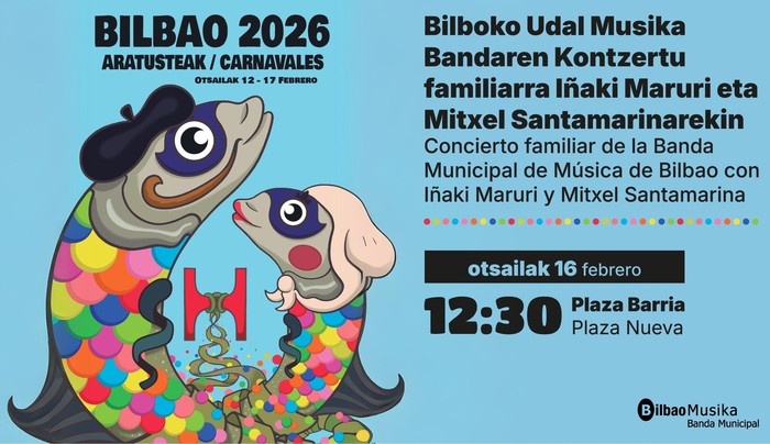 Bilboko Aratusteetako egitarauan, zezeilaren 16an, astelehenean, familiei zuzendutako jarduerak izango dira protagonista, eta Plaza Barria izango da agertoki nagusia. Eguerdiko 12:30ean, Bilboko Udal Musika Bandeak familientzako kontzertua eskainiko dau Mitxel Santamarina eta Iñaki Marurigaz batera, Iñaki Urkizuren zuzendaritzapean. Musikearen, umorearen eta hurbiltasunaren arteko buztarketa izango da proposamena.