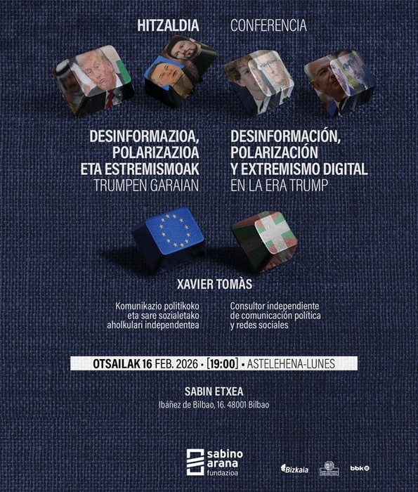 Bilboko Sabin Etxean (Ibañez de Bilbao, 16). | Berbaldiak'Desinformazioa, polarizazioa eta estremismoak Trumpen garaian'.
