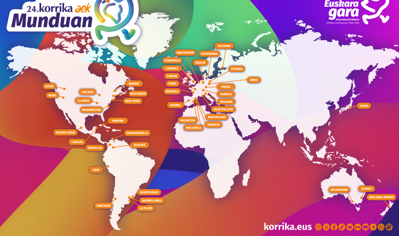 Euskal Herritik kanpo bizi bazara, edo diasporako komunidade baten parte bazara,Korrika Munduan atontzeko edo parte hartzeko aukerea badago. Jarri Korrikagaz hartu-emonetarako: korrika-munduan@korrika.eus