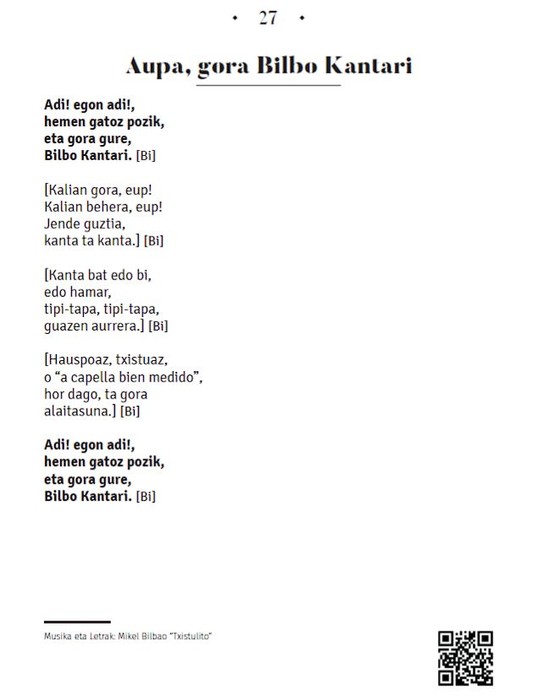 Bilbo Kantarik bere kantu-liburu barritua plazaratu dau