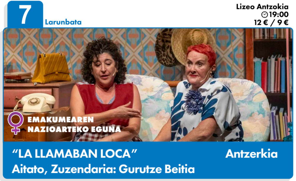 Gernika-Lumoko Lizeo Antzokian. | AntzerkiaEmakumearen Nazinoarteko Eguna. 'La llamaban loca'. Zuzendaria: GURUTZE BEITIA.