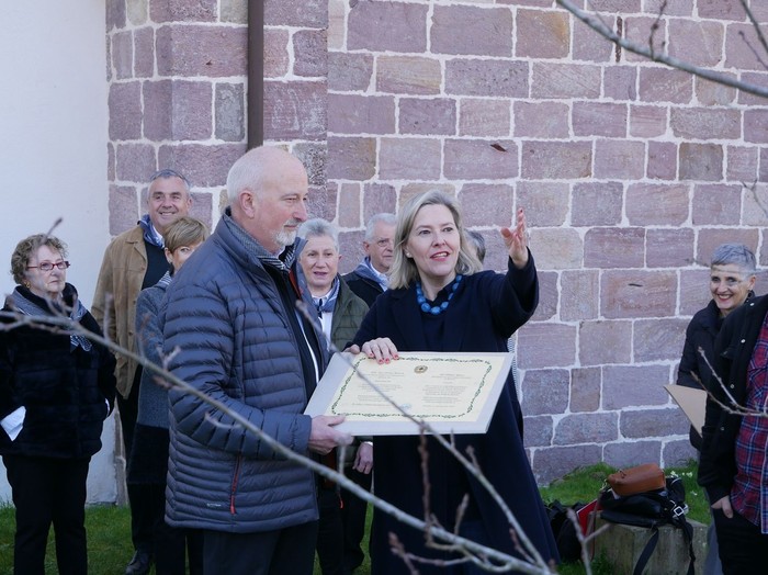 Berbaldien ostean landaketa sinbolikoa egin da eta agintariek eta bertaratutakoek lehenengo lur-palakadak bota deutsiez haretx barriari. Ekitaldia amaitzeko, Ana Otadui Biterik zugatzaren benetakotasun ziurtagiria emon deutso Jexux Urrutia Amaiurko Gaztelua Fundazinoko presidenteari.