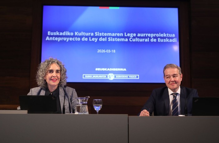 Ibone Bengoetxea lehen lehendakariorde eta Kultura eta Hizkuntza Politikako sailburuak Euskadiko Kultura Sistemearen Lege-aurreproiektua aurkeztu dau gaur San Telmo Museoan. Lege-proiektu horren bidez, danontzako arlo bat sortzea da asmoa Euskadiko kultura-ekosistema indartu eta zabaltzeko. Andoni Iturbe Kulturako sailburuordea be aurkezpenean egon da. Lehendakariordeak jakinarazo du martiaren 20an hasiko dala testuari alegazinoak aurkezteko epea.