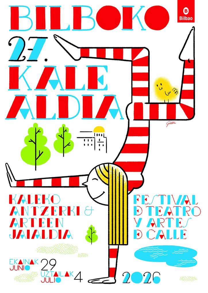 Udalak Bilboko hainbat lekutan aurten barriro udearen hasieran izango dan Kaleko Antzerki eta Arteen Jaialdiaren irudia aurkeztu dau.