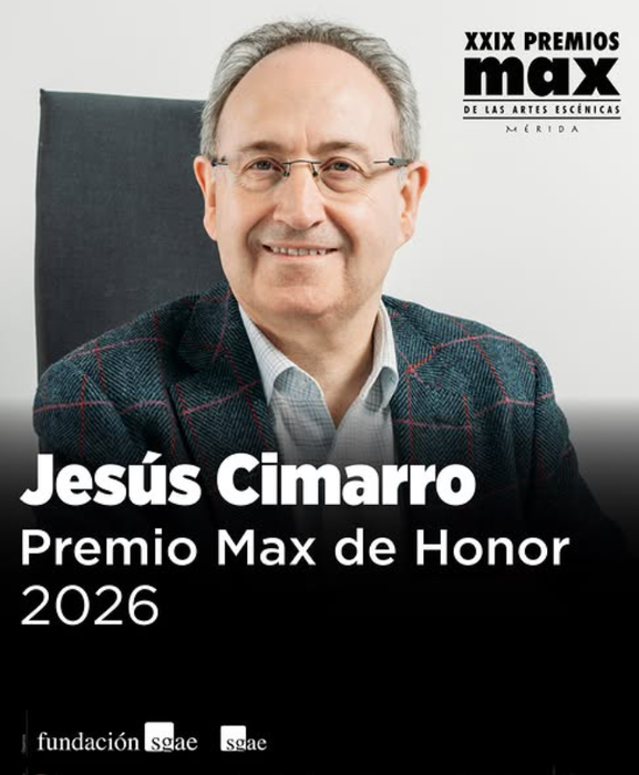 SGAE Fundazinoak Ohorezko Max Saria 2026 emon deutso Jesús Cimarro euskal produktore, kultur kudeatzaile eta antzerkigileari. SGAEren Zuzenbide Handiko Alkargoak aho batez adostu dau, entzute handiko handiko enpresa-ibilbide eta lan profesional nekaezina egiteagaitik, baita Arte Eszenikoak potentzia ekonomiko eta aberastasun-iturri lez kokatzeko erakutsitako kapazidadeagaitik be, beti egile eskubideak errespetauta. Saria datorren bagilaren 1ean Meridako Erromatar Antzokian jasoko dau.