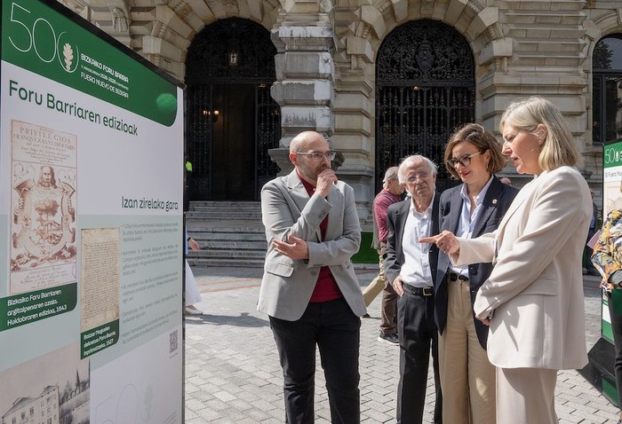 Elixabete Etxanobe Landajuela Bizkaiko Ahaldun Nagusiak eta Ana Otadui Biteri Bizkaiko Batzar Nagusiak erakundeko buruak inaugurau dabe Bizkaiko Foru Barriaren (1526-2026) V. Mendeurrena ospatzeko erakusketa-programazinoa. Ekimenaren helburua da, euskal autogobernuaren eta demokraziaren oinarria eta Lurralde Historikoaren nortasuna bera dan testu erabagigarriaren garrantzia herritarrei hurreratzea.