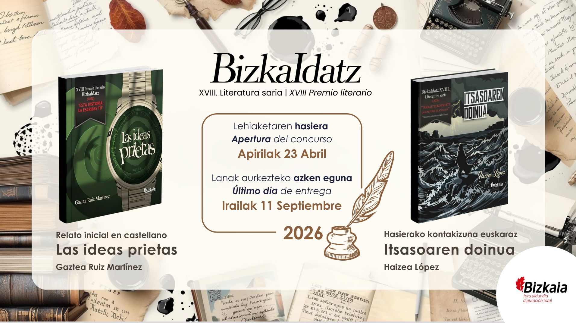 2026-04-23 12:02 KultureaBizkaIdatz XVIII. Literatura Saria gaur hasiko da.