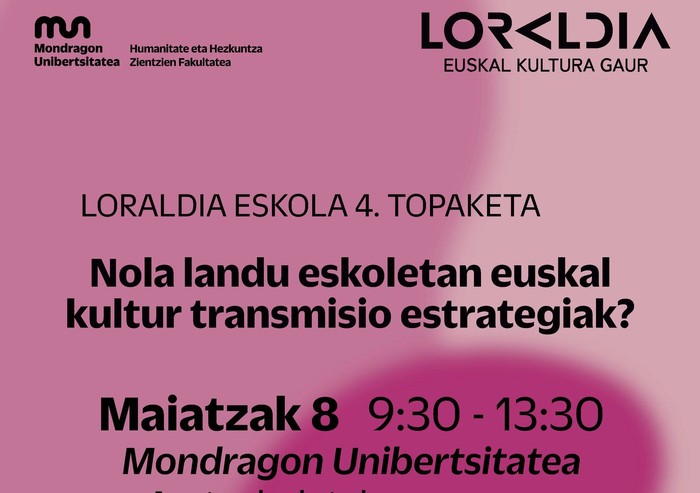 2026-04-28 10:27 KultureaLoraldia Eskoleak bere 4. topaketea egingo dau maiatzaren 8an.