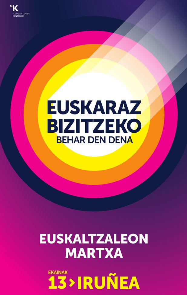 Bagilaren 13an, Iruñean Kontseilua atontzen dabilen mobilizazinoa, Euskaltzaleon Martxea. 2024an edegitako bideari jarraipena emonez, helburua da egungo larrialdi linguistikotik indarraldira igaroteko preminea gizarteratzea eta pizkunde barri baterako txinpartea izatea.