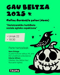 Online. |IkastaroakTaupa, euskaltzaleen mobimenduak, Gau Beltzaren inguruko online formazino saioa egingo dau urriaren 22an, doban. Formazino saioa edonori edegia dago eta Gau Beltzaren inguruko ezagutzan sakontzea dau helburu.