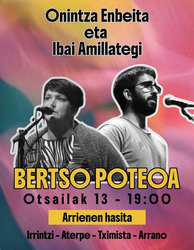 Algortan. |BertsolaritzeaOndoko bertsolari honeek parte hartuko dabe: June Aiestaran, Beñat Zeberio, Enara Gallastegi, Irune Basagoiti, Aitor Tatiegi, Bittor Altube, Kattin Madariaga eta Hegoi Amabizka.