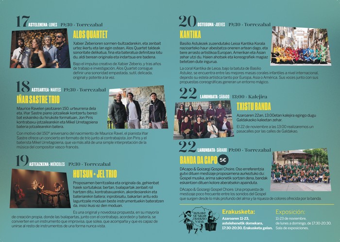 Ganerako aurkezpenetako hitzorduak erantsitako argazkian ikusi.
