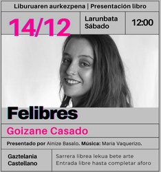 Saioa 19:00retan hasiko da, Bidebarrietako liburutegian. Sarrera librea eta dobakoa izango da, aretoa bete arte, eta bertaratu ezin dauenak streaming bidez jarraitu ahalko dau Bidebarrieta Kulturguneko youtube kanalean.
