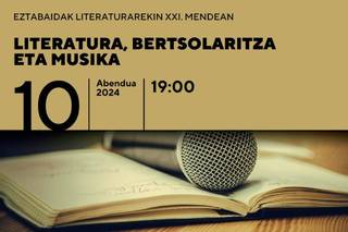 Idatzizko narrazinoen, musikearen eta bertsolaritzearen arteko loturei buruz berba egingo dabe Amurizak eta Ibarzabalek eta zenbait galdera erantzuten saiatuko dira: zuzena al da bertsolaritzea literaturearen adartzat hartzea? Bertsolariek idazletzat joten ei dabe euren burua? Bertsolaritzan ibilteak literaturara eroan ete zituan edo bidea alderantzizkoa izan zan?