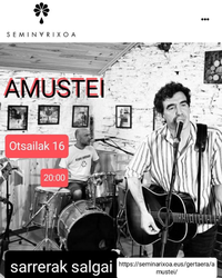 Bergarako Seminarixoan. |MusikeaMikel Garate, Kepa Leturia, Iñigo Irizar, Joseba Aldanondo eta Iñigo Ibarzabal dira Amustei. Diskoa, 2023ko urtarrilean eta zezeilean grabau eben Beasaingo Pottoko estudioan, eta Aldoka Maldoka (Popis) tabernan eta euren zuzenekoetan egongo da salgai.