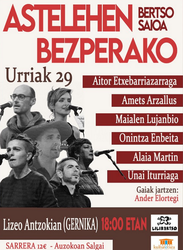 Gernikako Lizeo Antzokian |Bertsolaritzea- Bertsolariak: Aitor Etxebarriazarraga, Amets Arzallus, Maialen Lujanbio, Onintza Enbeita, Alaia Martin eta Unai Iturriaga.