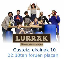 Gasteizen, Foruen plazan |BestelakoakBilboko eta Gasteizko Udalek uri biotako kaleko antzerki jaialdien bitartez produzidutako eta Adrian Schvarzstein clown eta zirku eta antzerki zuzendariak zuzentzen dauen Lurrak euskal zirku garaikideko ikuskizuna.