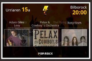 Bilboko Bilborock aretoan |Musikea27. Bilbo Hiria Pop Rock Lehiaketea. Pop Rock: ADAM GYLES LEVY (Bizkaia) + PELAX ETA COWBOY'S ORCHESTRA (Gipuzkoa) + ROSY FINCH (Alacant)