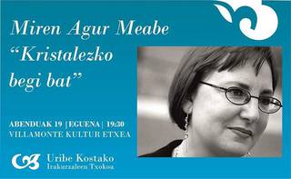 Miren Agur Meabegaz solasaldia Kristalezko begi bat eleberriaz